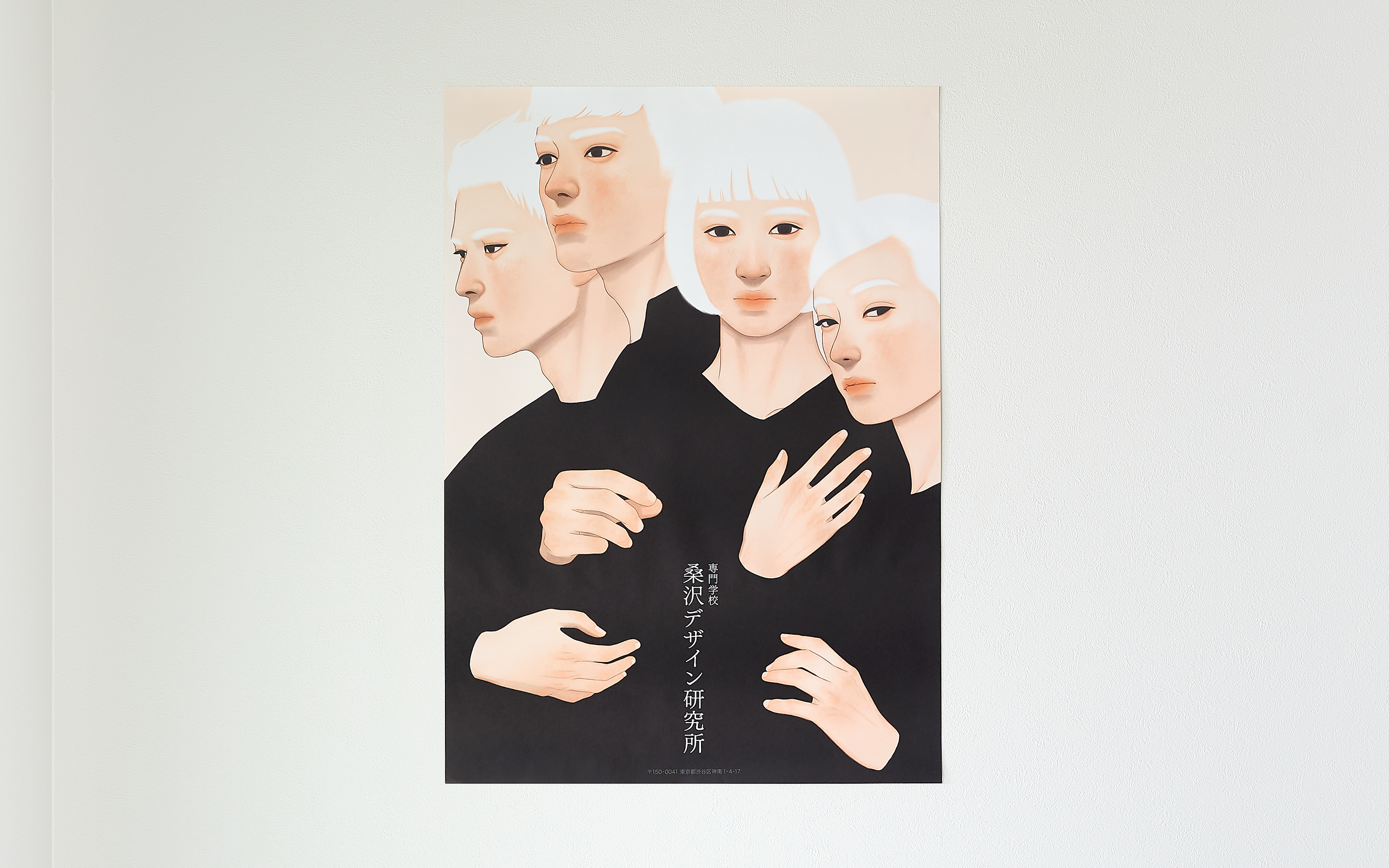 イラストレーター カワタアキナからの依頼で、桑沢デザイン研究所 2021年度版イメージビジュアルのポスターデザイン及び印刷ディレクションを行いました。